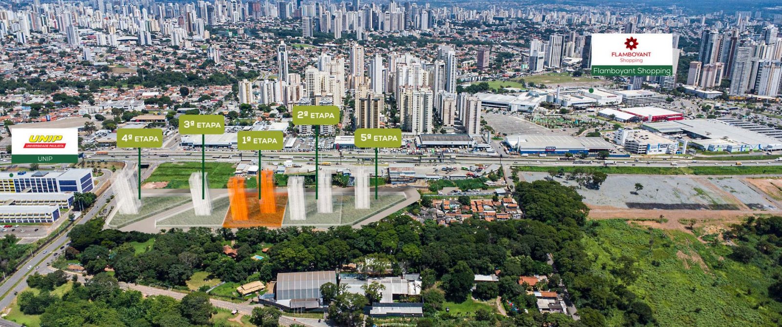 Próximo ao Parque Flamboyant, um dos maiores ícones de lazer e bem-estar da capital, com amplas áreas verdes, trilhas, lago e espaços para esportes e convivência ao ar livre. Além disso, ao lado estão Shopping Flamboyant, referência em compras, gastronomia e entretenimento em Goiânia, com acesso rápido a restaurantes premiados, grifes exclusivas, cinema, eventos culturais e serviços de alto padrão. Um verdadeiro polo de conveniência e sofisticação para quem valoriza praticidade e qualidade de vida.